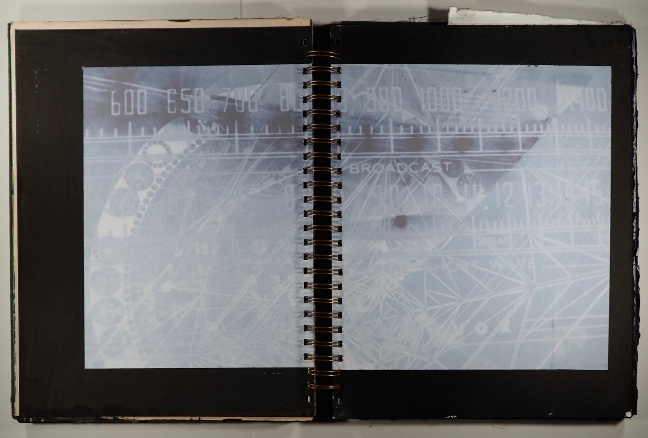 2016 The Final Frontier mixed media collage, embedded in the cover pages of a Rand McNally World Atlas, International Edition 1944, 11" x 14". Since 2020 part of the ICI Archive at the Getty Research Center, Los Angeles.