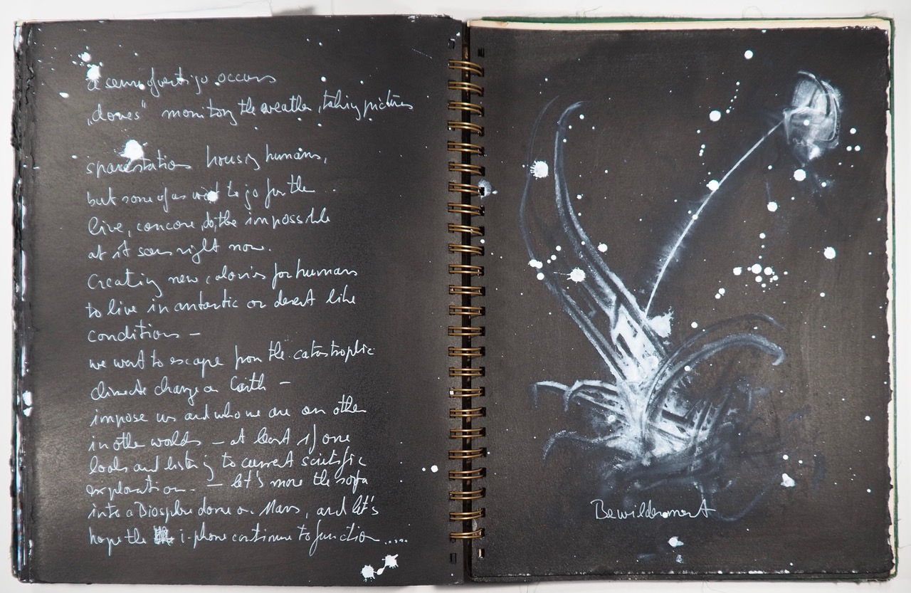 2016 The Final Frontier mixed media collage, embedded in the cover pages of a Rand McNally World Atlas, International Edition 1944, 11" x 14".
