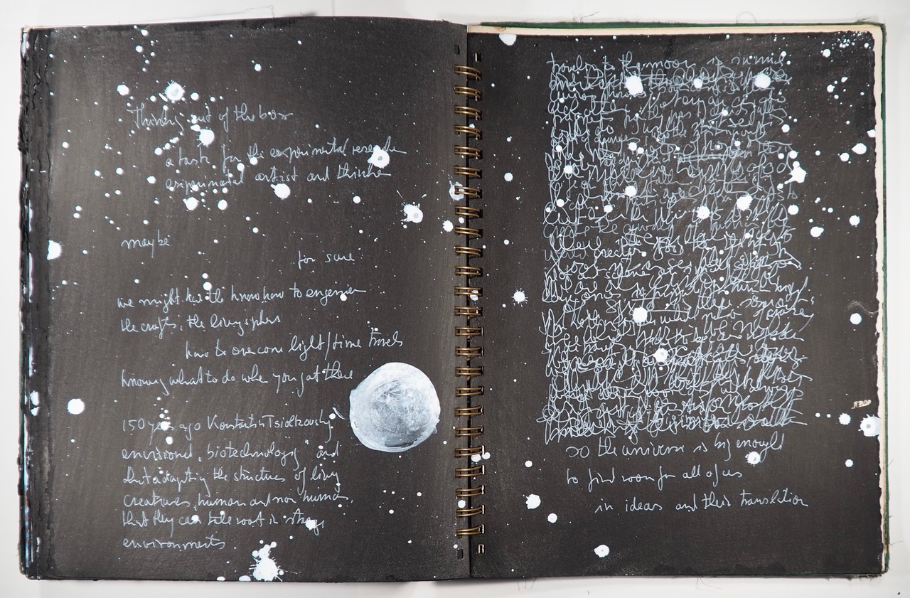 2016 The Final Frontier mixed media collage, embedded in the cover pages of a Rand McNally World Atlas, International Edition 1944, 11" x 14".