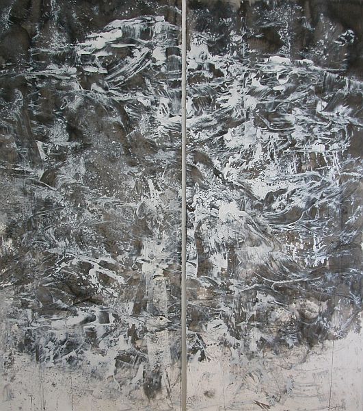 # 1626: 2012. Ink, oil, cold wax on 2 panels of BFK paper, 8 x 7 feet, 240 x 210 cm. [photo: CD]